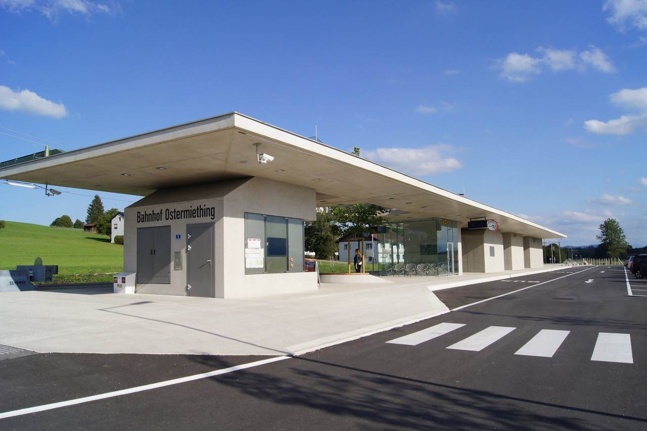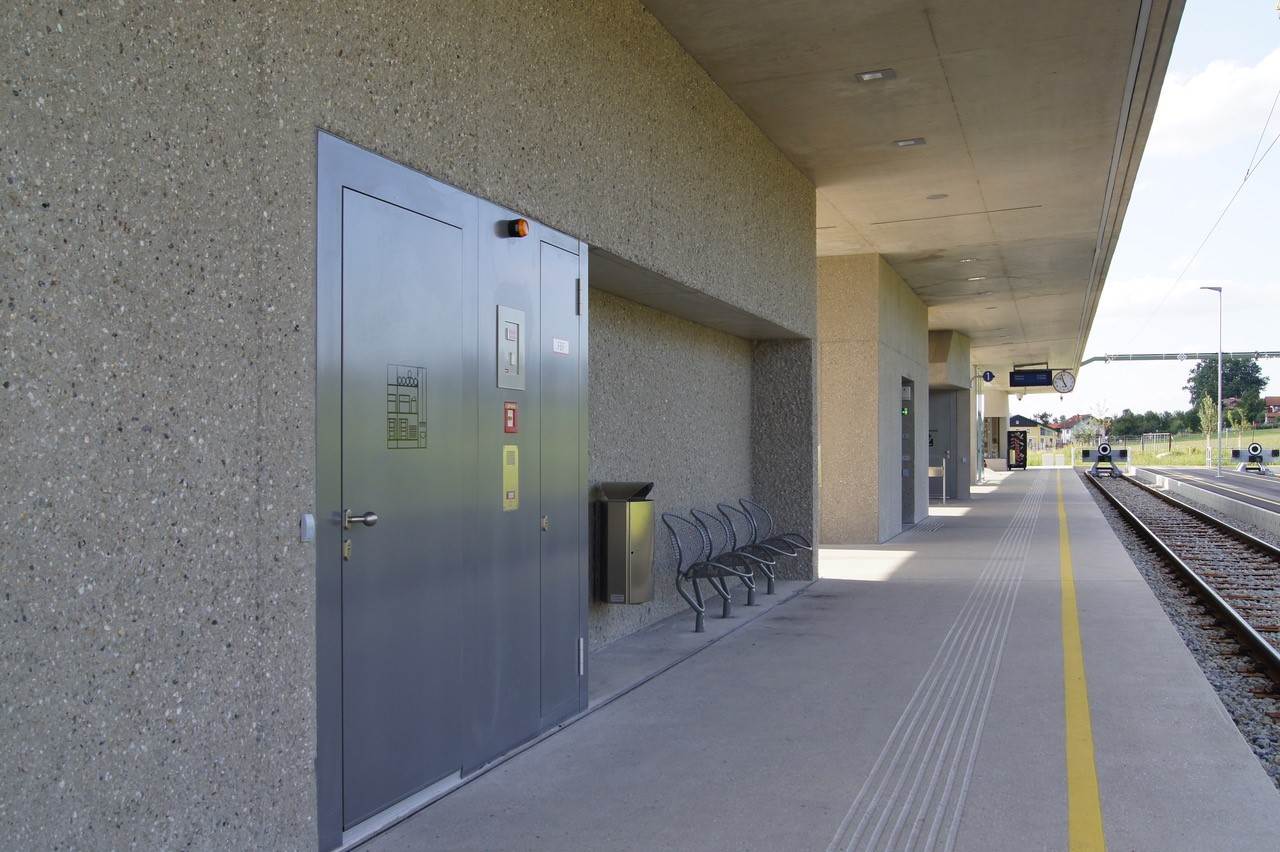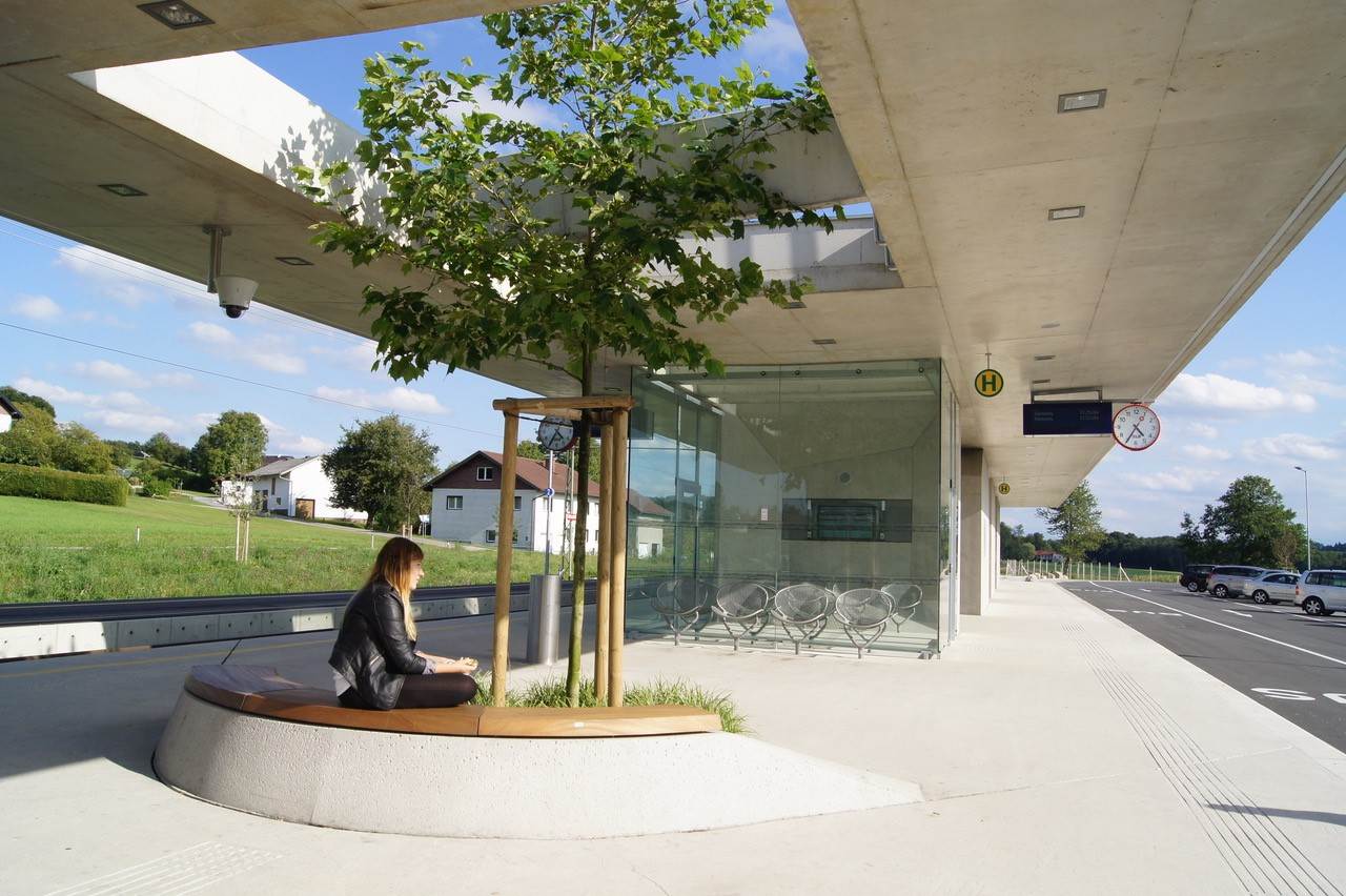 Knapp 300.000 Fahrgäste aus dem Bezirk Braunau nutzen jährlich die klimafreundliche, stau- und stressfreie Verbindung nach Salzburg und zurück. Egal ob in die Schule, zum Arbeitsplatz oder in der Freizeit: Auf den neuen, zeitgemäßen, architektonisch anspruchsvollen und nutzungsfreundlichen Bahnhof fährt seit seiner Fertigstellung im Jahr 2014 jeder Fahrgast ab. Daran sind wir von RHZ nicht ganz unschuldig. Denn unser Job war es einerseits, einen zirka 80 Meter langen und 10,5 Meter breiten, überdachten Bereich in Stahlbetonbauweise zu realisieren. Andererseits Nutzungsräume zu errichten, die in vier getrennten, würfelförmigen Baukörpern untergebracht sind. Wobei der Betonkörper aus Sichtbeton aufgrund seiner vier unterschiedlichen Betonoberflächen optisch eine außergewöhnliche Figur macht. Gestockt, sandgestrahlt, geschliffen und auf herkömmliche Weise glatt gehalten, ergänzen sich die Oberflächen perfekt und verleihen dem Bahnhof eine besondere Wirkung.
