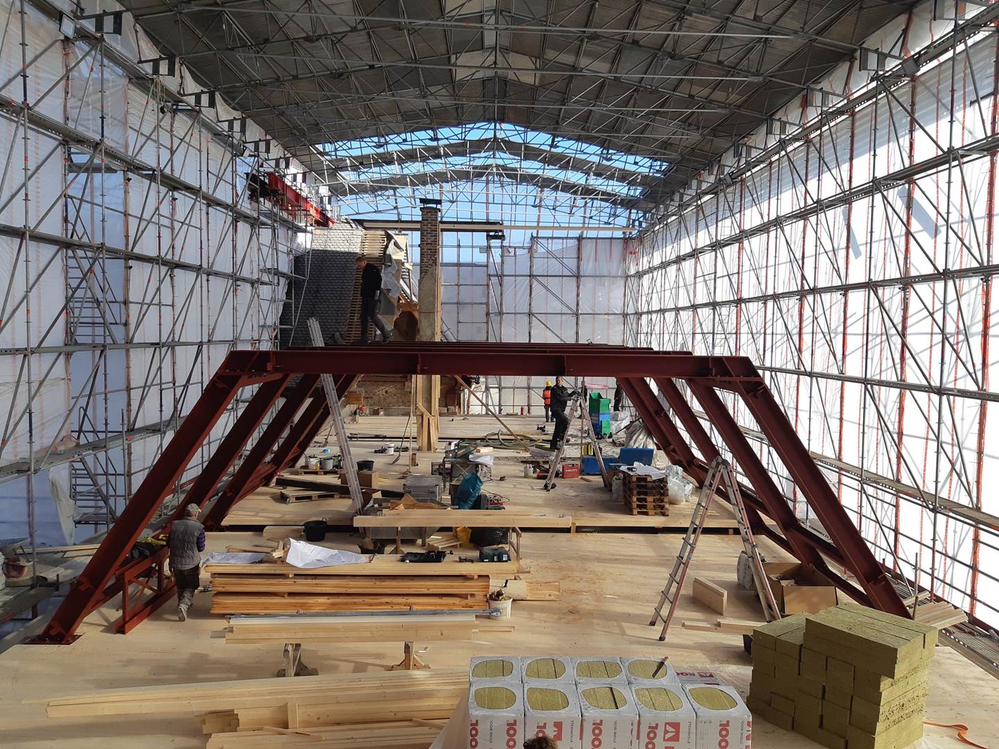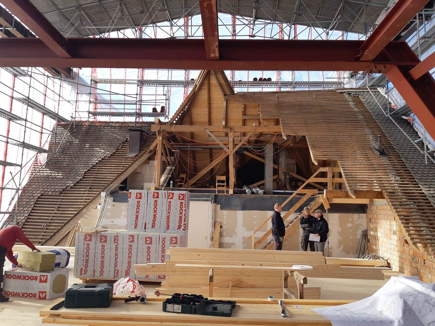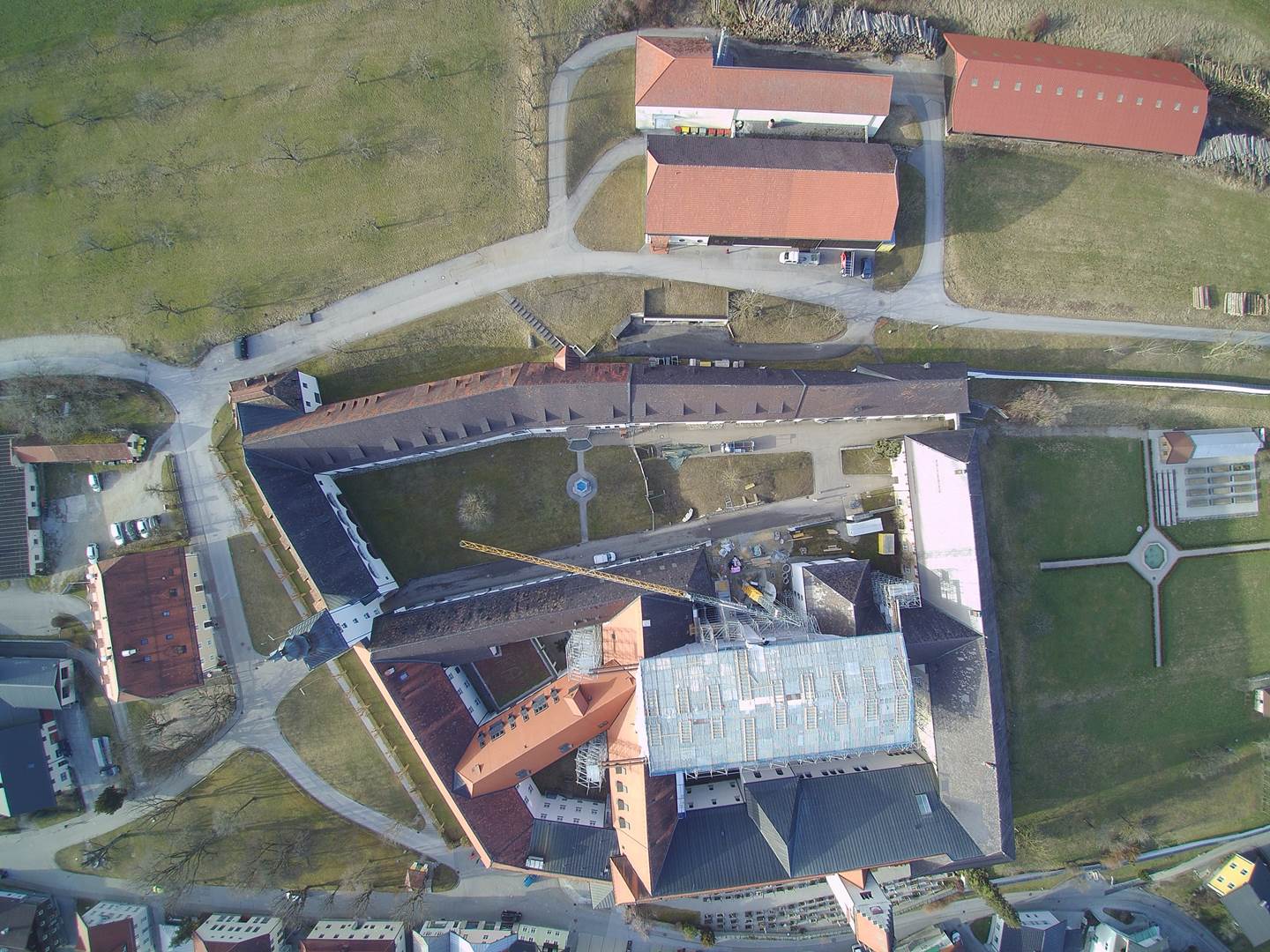 Wegen Bränden und von anderen Anforderungen war in der Benediktinerabtei Michaelbeuren in ihrer langen Geschichte immer wieder Erweiterungen und Sanierungen notwendig. In größerem Ausmaß zuletzt im Jahr 2020. Konkret wurden wir für den Umbau des Refektoriums nach den Plänen von Bmst. DI Helmut Hopfner beauftragt. Umbau bedeutete unter anderem, den bestehenden Dachstuhl und die Dippelbaumdecke abzubrechen, ein Wetterschutzdach zum Schutz des historischen Bestandes zu realisieren und neue Auflager für den Stahlbau herzustellen. Darüber hinaus oblag es uns Spezialisten von RHZ, das historische Gesimse, den Putz und den Tramkopf zu sanieren sowie die Klassenzimmer der Schule umzubauen. Alles in allem eine wunderbare Aufgabe, bei der wir manchmal die freundliche Unterstützung von ganz oben zu spüren glaubten