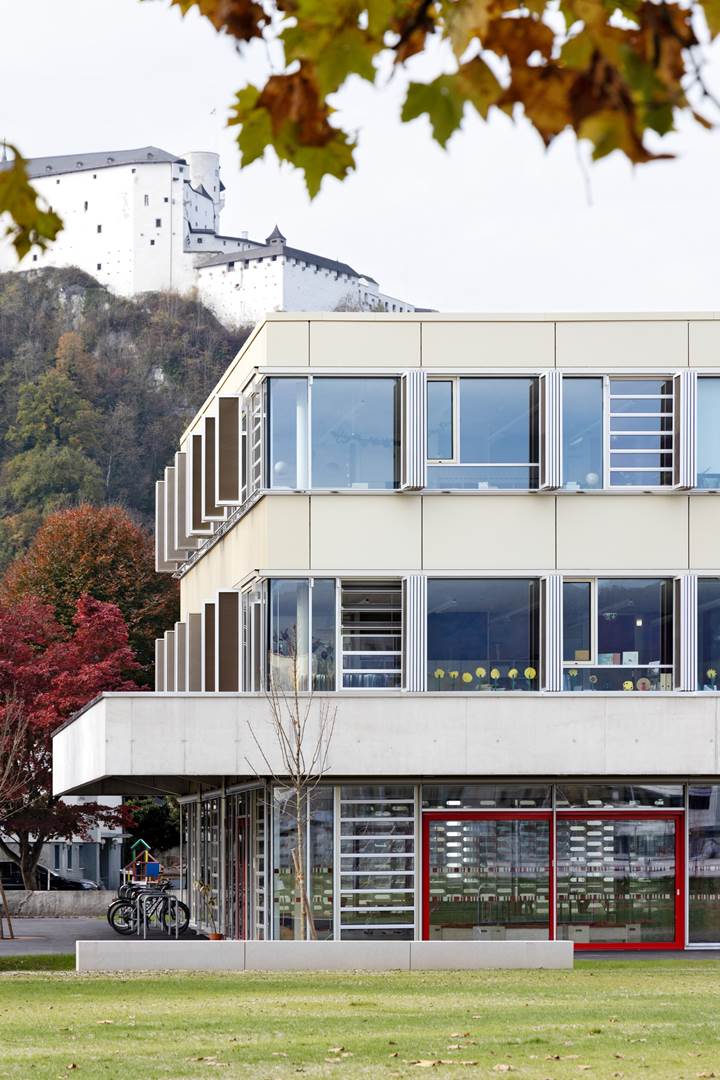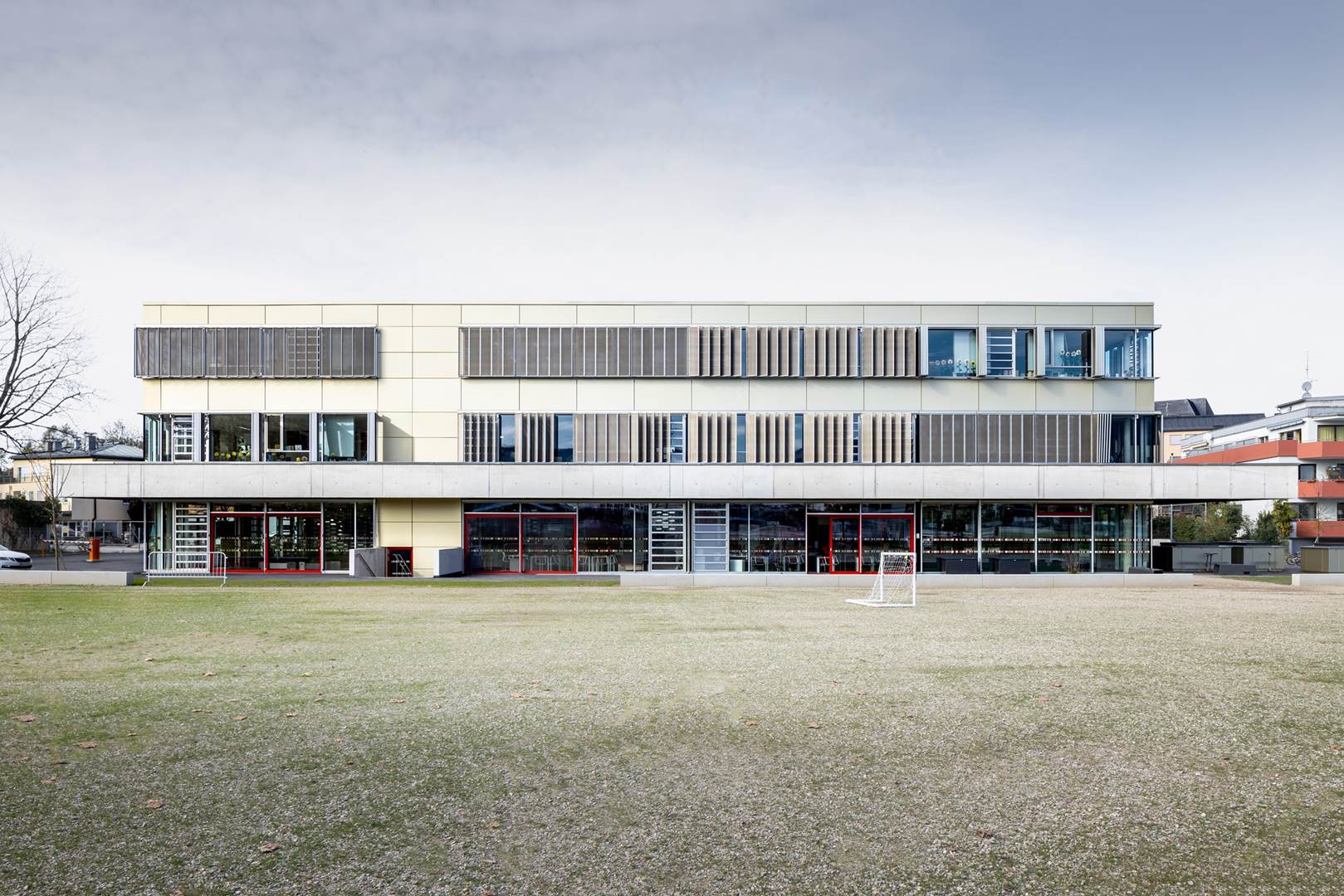 Weil durch die Erweiterung der PH für die bestehende Praxisschule am alten Standort kein Platz mehr war, entschied man sich für einerseits für einen Neubau, andererseits für RHZ als Baumeister für dieses wichtige Projekt. Nunmehr am letzten Stand der Zeit besteht die Schule jetzt aus zwei unterirdisch miteinander verbundenen Gebäuden. Konkret sind es das Schulhaus und der Turnsaal. Die Gesamtfläche beträgt rund 2.600 Quadratmeter. Im Erdgeschoß steht den Schülerinnen und Schülern ein kleines Foyer, eine Bibliothek, Klassenräume und ein Bereich für die Nachmittagsbetreuung zur Verfügung. Im ersten Obergeschoß befinden sich weitere Klassenräume und die Verwaltung. Das Untergeschoß ist durch Lichtschächte, Oberlichten und großzügiger Raumhöhe eine hochwertige Nutzfläche für Bewegungs-, Kreativ-, Koch- und Essensräume geworden. Von hier aus gelangen die Kinder über einen Verbindungsgang direkt in den Turnsaal. Der obere Bereich des Hauses ragt über den Grund hinaus und lässt viel Tageslicht ins Innere strömen. Die Fassadengestaltung harmoniert mit dem Schwesterngebäude der Pädagogischen Hochschule, die Außenflächen von Turnsaal und Vordach bestehen aus Sichtbeton.