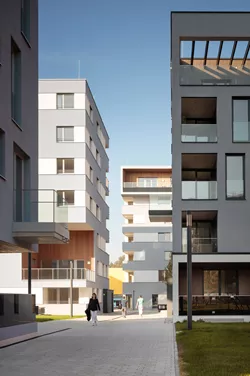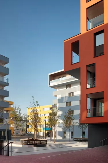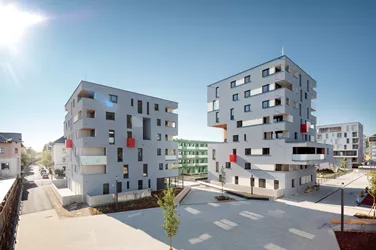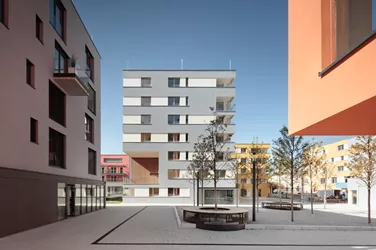 Die Nutzung des 35.000 m² großen Geländes des Heereskommandos Salzburg im Stadtteil Riedenburg war lange Zeit in öffentlicher Diskussion. Nachdem das Gelände schließlich von der Salzburger Sozialbauträgerin Gswb erworben wurde, beauftragte sie RHZ als Generalunternehmer mit dem Bau von 17 Gebäuden mit 253 Wohnungen, zwei Tiefgaragen, Büros und Geschäften, einem Kindergarten und einem Café. Die Herausforderung bestand für uns unter andere darin, mehr als 50 Betriebe zu koordinieren. Also die Firmen so zu takten, dass sie sich nicht gegenseitig behindern und es zu keinen Verzögerungen kommt. Genau das ist RHZ-Projektleiter Dipl. Ing. (FH) Philipp Krall gemeinsam mit seinem 70 bis 160 Mann starken Team gelungen. So gut, dass die Arbeiten von September 2016 bis August 2019 drei Monate kürzer dauerten als geplant.